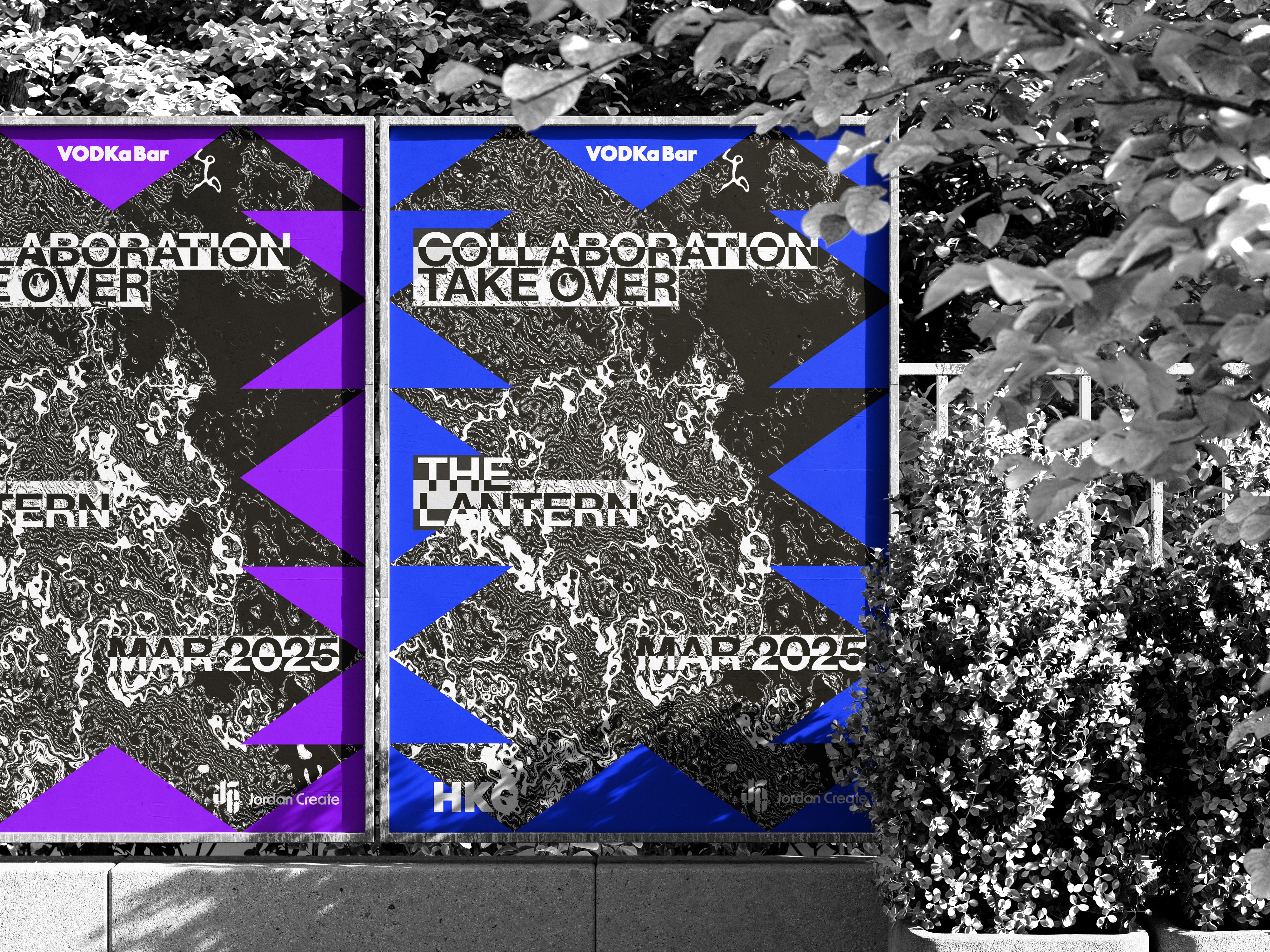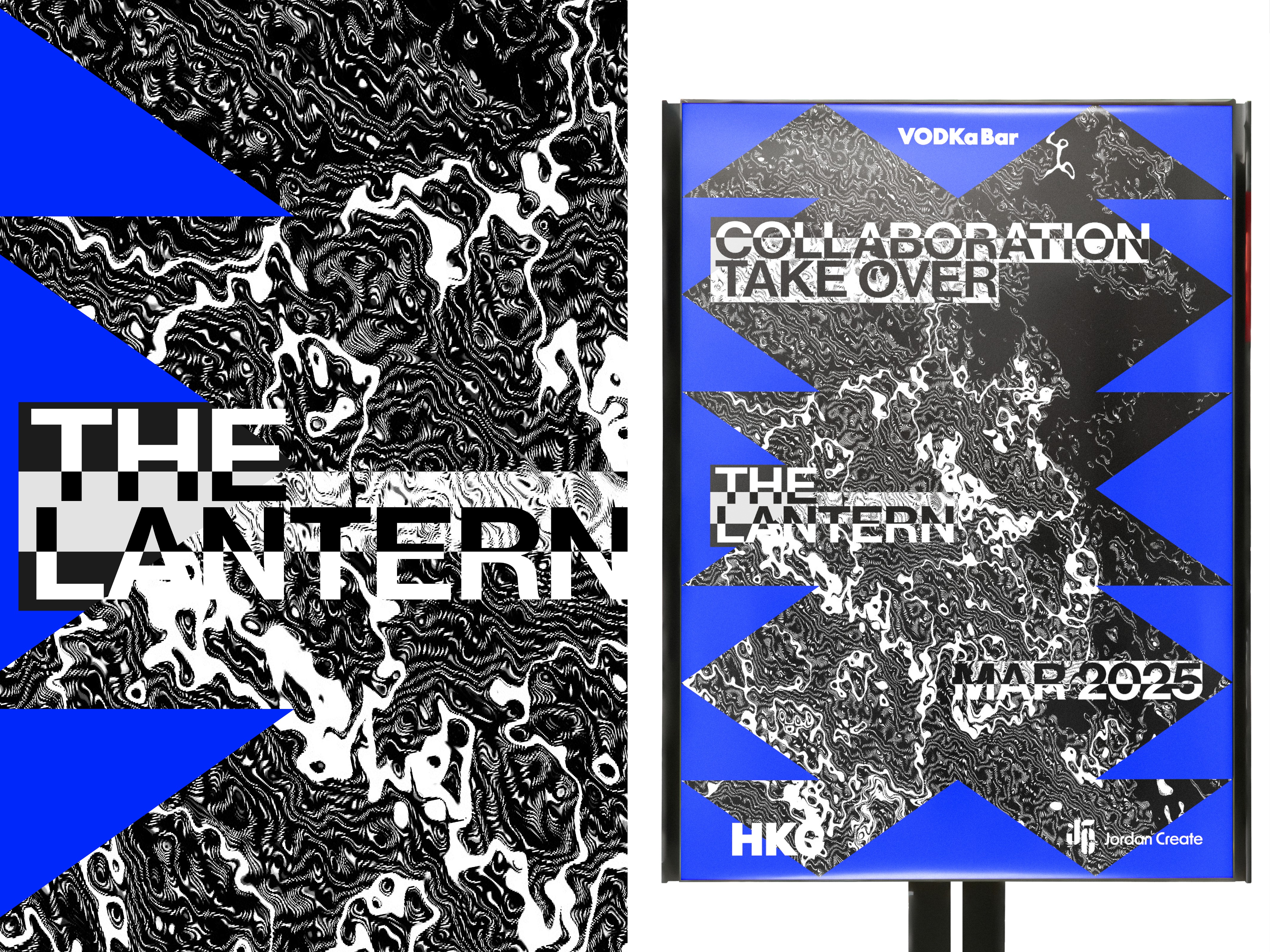 Project Overview: Created for a new vodka range positioned within a nightclub setting, this project addressed how identity can communicate atmosphere as much as product. The challenge was to capture the energy, movement, and intensity of the venue without relying on conventional hospitality branding cues. The concept centred on kinetic and distorted typography as a primary expressive device, forming a dynamic system designed to feel immersive rather than static. Developed for scalability and impact, the identity balances typographic variation with consistency, resulting in a cohesive visual language deployed across motion graphics, posters, and large-scale wall installations within The Lantern venue.